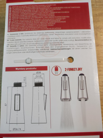 Aerator do baterii z wyciąganą wylewką 2-funkcyjny STINNEA